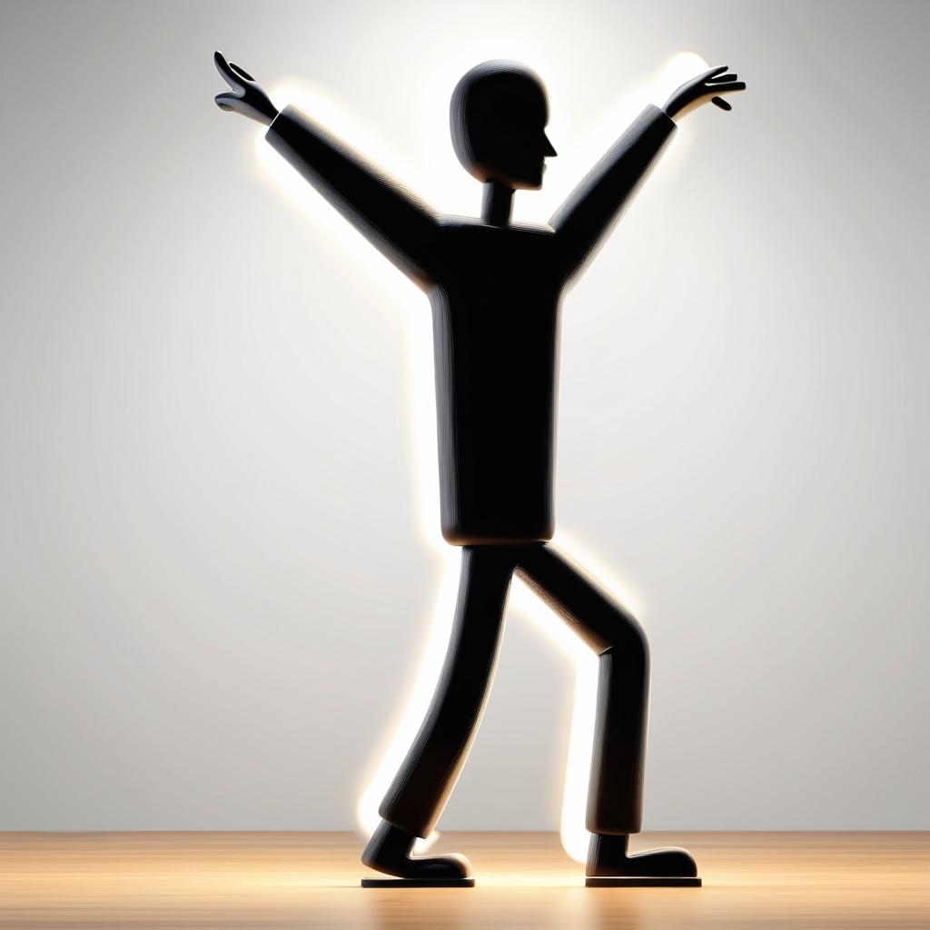 通过这幅作品,我们可以感受到一种轻松和愉悦的氛围。火柴人的姿态似乎在传达一种运动中的快乐,仿佛在邀请观者一同参与到这场视觉的舞蹈中。这样的设计不仅仅是为了展示简单的美学,更是在挑战观众如何在最基本的元素中寻找复杂的情感表达。