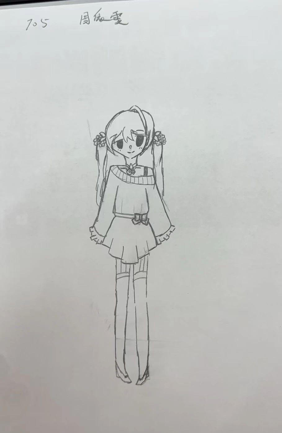 这幅手稿以其简洁而富有表现力的线条,成功地捕捉了角色的可爱特质。通过对服装和发型的细致描绘,手稿展现了角色的个性和情感。在雕塑设计中,这种可爱的特质可以通过有机形态的艺术表现手法来实现。使用光滑的材质和简约的几何形状,雕塑将保留角色的核心特征,并在空间中创造出一种亲切而生动的艺术氛围。通过雕塑的形式,角色的情感和故事得以进一步传达,使观众能够更好地与作品产生情感共鸣。
