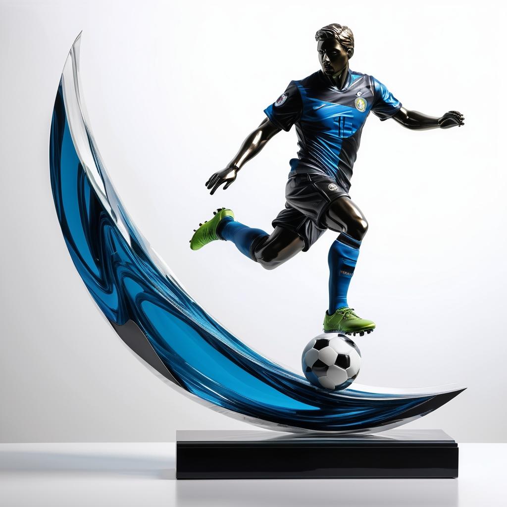 可以将这幅手稿转化为一座动态雕塑,捕捉足球比赛中的活力和激情。雕塑的主体可以是一个抽象的足球场形态,利用流畅的线条和曲面来表现运动的节奏感。材质上可以选择金属或玻璃,以体现光影的变化和观众的热情。人物则可以以简化的几何形态出现,增强雕塑的现代感和表现力。通过这种设计,作品将成为对运动精神的抽象表达,充满视觉吸引力。