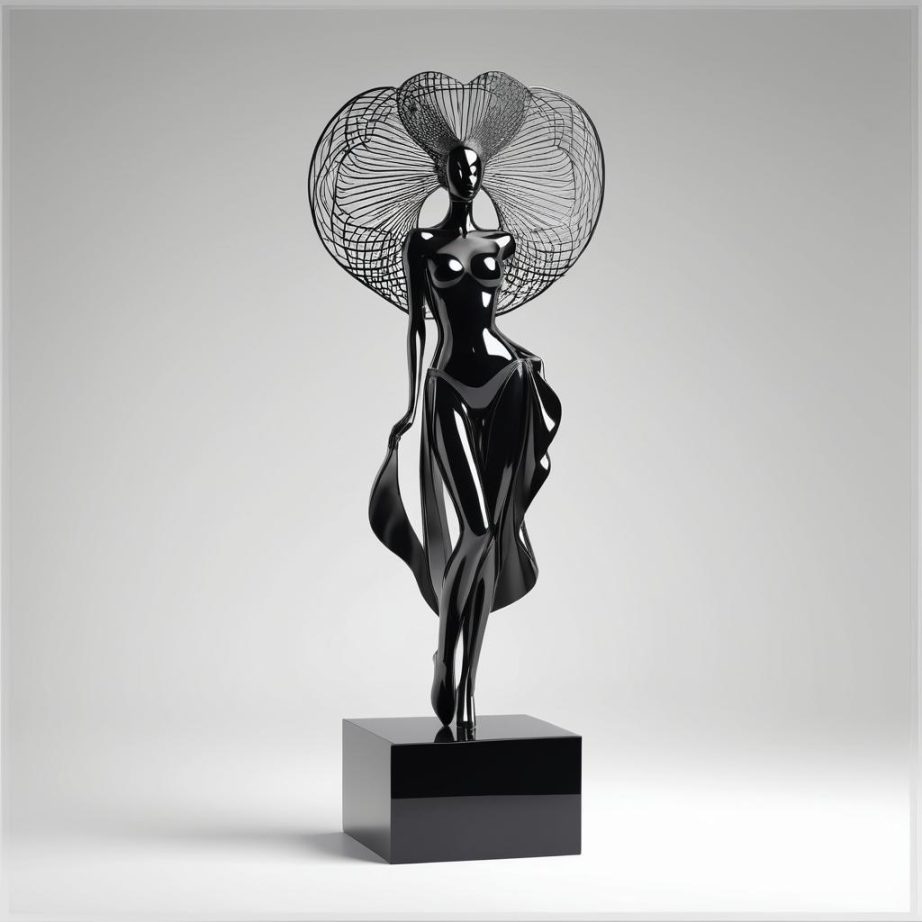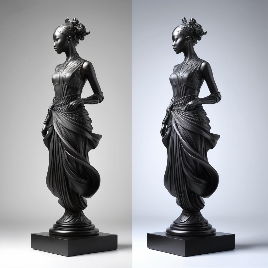 将这幅手稿转换为雕塑时,可以强调人物的姿态和服饰的细节。使用流线型的雕塑形式来捕捉角色的动态感,并在材质上选择能够展现光影效果的石材或金属,以增强视觉吸引力。装饰细节如发饰可以通过精细雕刻来体现。整体设计应保留角色的文化元素,同时注重雕塑的对称性与和谐美。