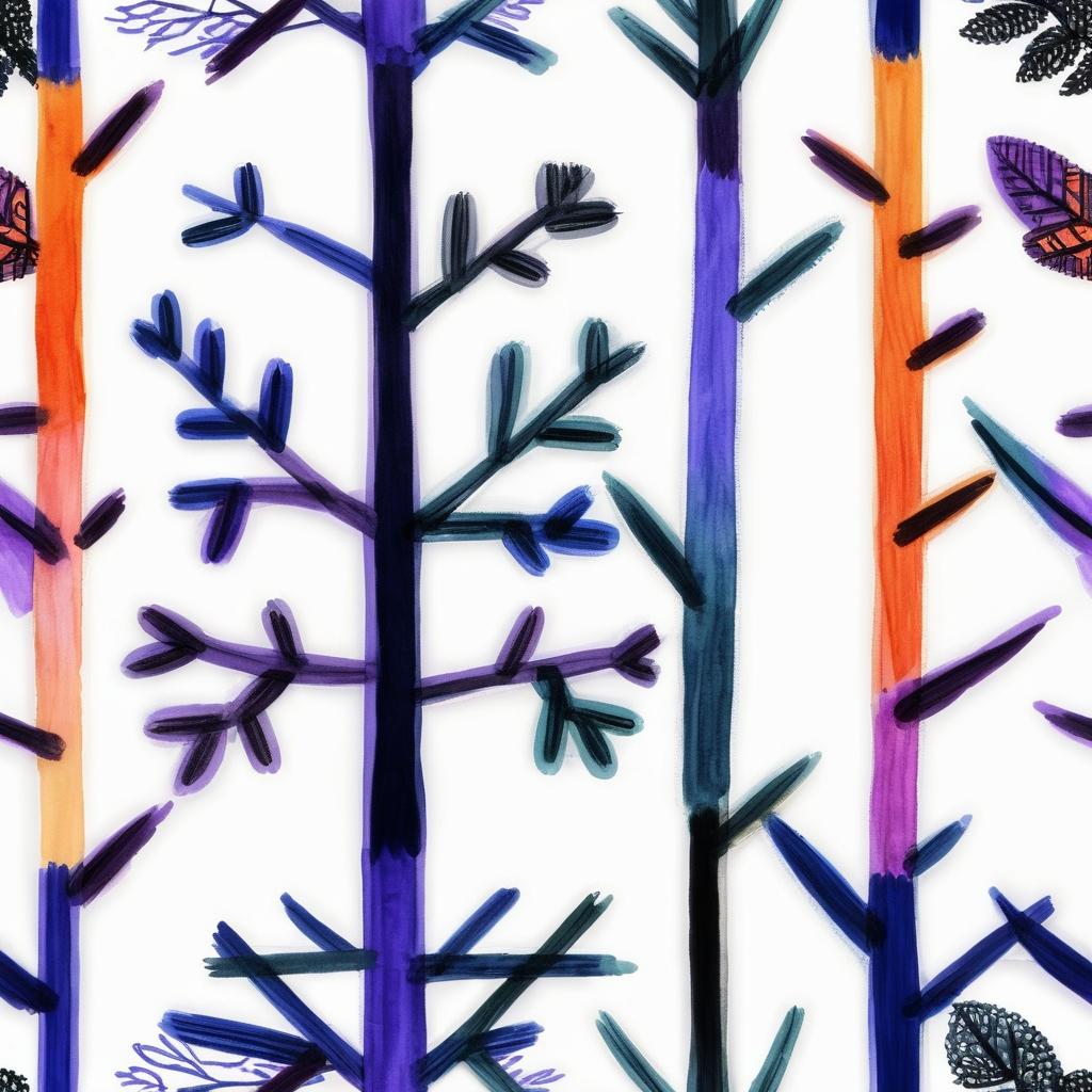 这幅作品使用了简单的线条和块状的色彩,主要以灰色、紫色和橙色为主。构图呈现出一种枝丫状的形态,带有幼儿画作的天真和创造性。图中还包含了手写的文字元素,增加了作品的个性化和趣味性。整体传达了一种轻松、自然的氛围,可能意在表达生命的多样性和成长的主题。