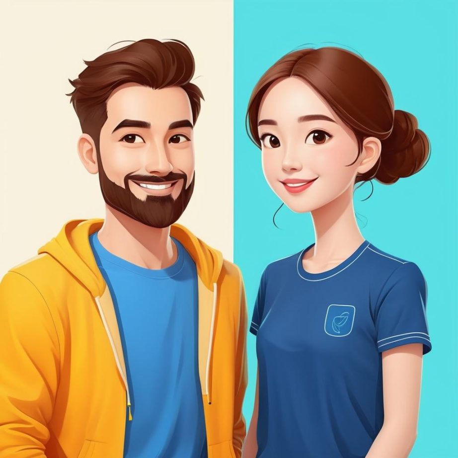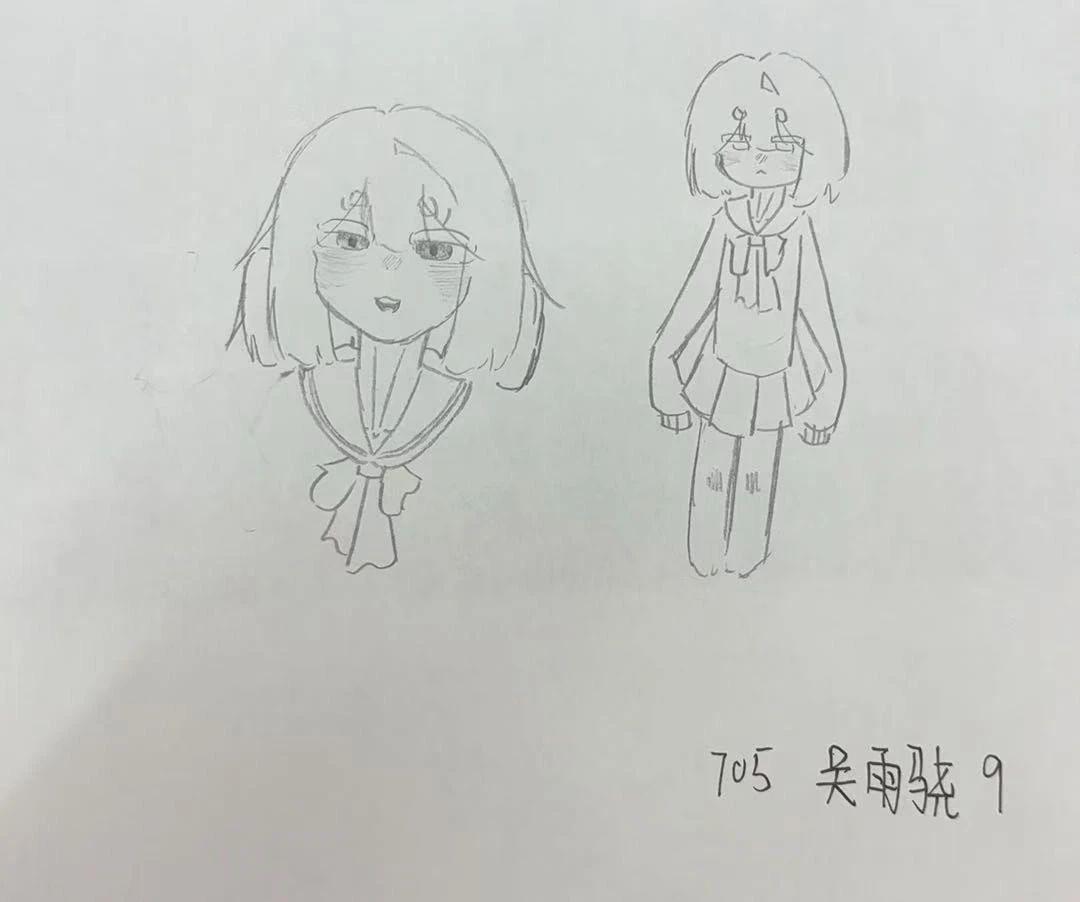 这幅作品是一幅简单的铅笔手稿,描绘了两个卡通人物。左侧是一个半身像,右侧是一个全身像。人物的表情细腻,具有轻松的情感表达。整体风格偏向卡通和简约,线条流畅且富有动感。