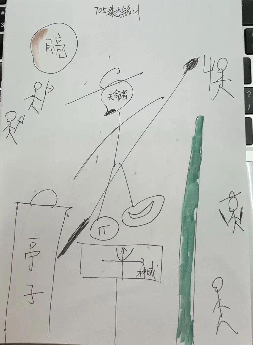这是一幅手绘草图,包含多个元素,包括人物、文字和简单的图形。总体来看,图中的内容与感恩节主题元素如秋季自然景观、丰收象征或家庭团聚场景无关。可以注意到黑白色调的使用和简单的线条结构。
