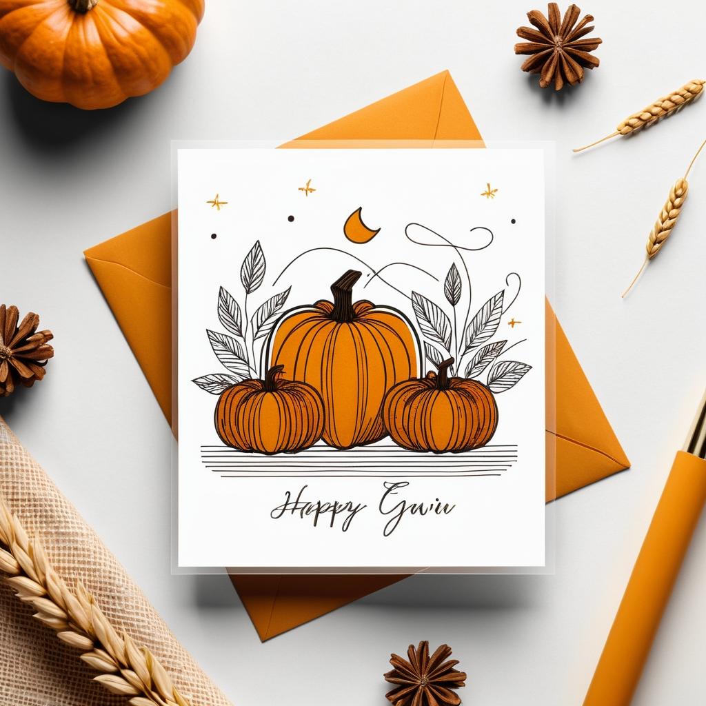 通过分析这幅手绘草图,我们可以将其转化为具有浓厚感恩节氛围的谢卡设计。尽管原图缺乏明显的节日元素,但通过添加南瓜、麦穗和灯笼等符号,可以营造出丰收和感恩的主题。使用柔和的暖色调,如橙色和黄色,增添节日的温暖和舒适感。同时,保持线条的简洁性,使其传达出一种现代极简的美感。这种设计既适合家庭赠送,也能用于商业用途,展现感恩节的深刻情感和视觉吸引力。