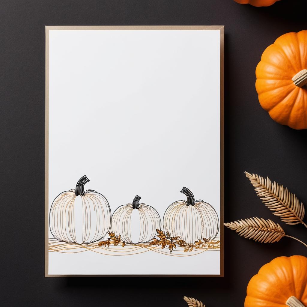将图片中的线条转化为抽象的秋季景观,通过添加色彩丰富的南瓜、麦穗和灯笼等元素,同时保留线条的简洁性。使用柔和的暖色调,增强节日的温暖氛围。