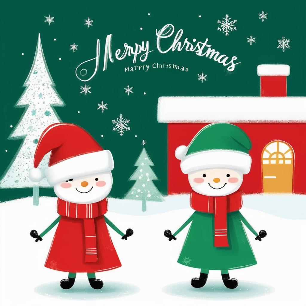 这幅简单的手绘作品,通过添加圣诞元素,如圣诞帽、围巾和雪花,可以轻松转化为一张充满节日气氛的贺卡设计。在简约的线条基础上,引入柔和的节日色彩,如红色和绿色,能够增加作品的节日感染力。此外,通过背景中的灯光装饰和雪景,可以营造出温暖而梦幻的节日氛围。这样的设计不仅保留了原作的简单和纯粹,同时也赋予了其全新的节日意义。