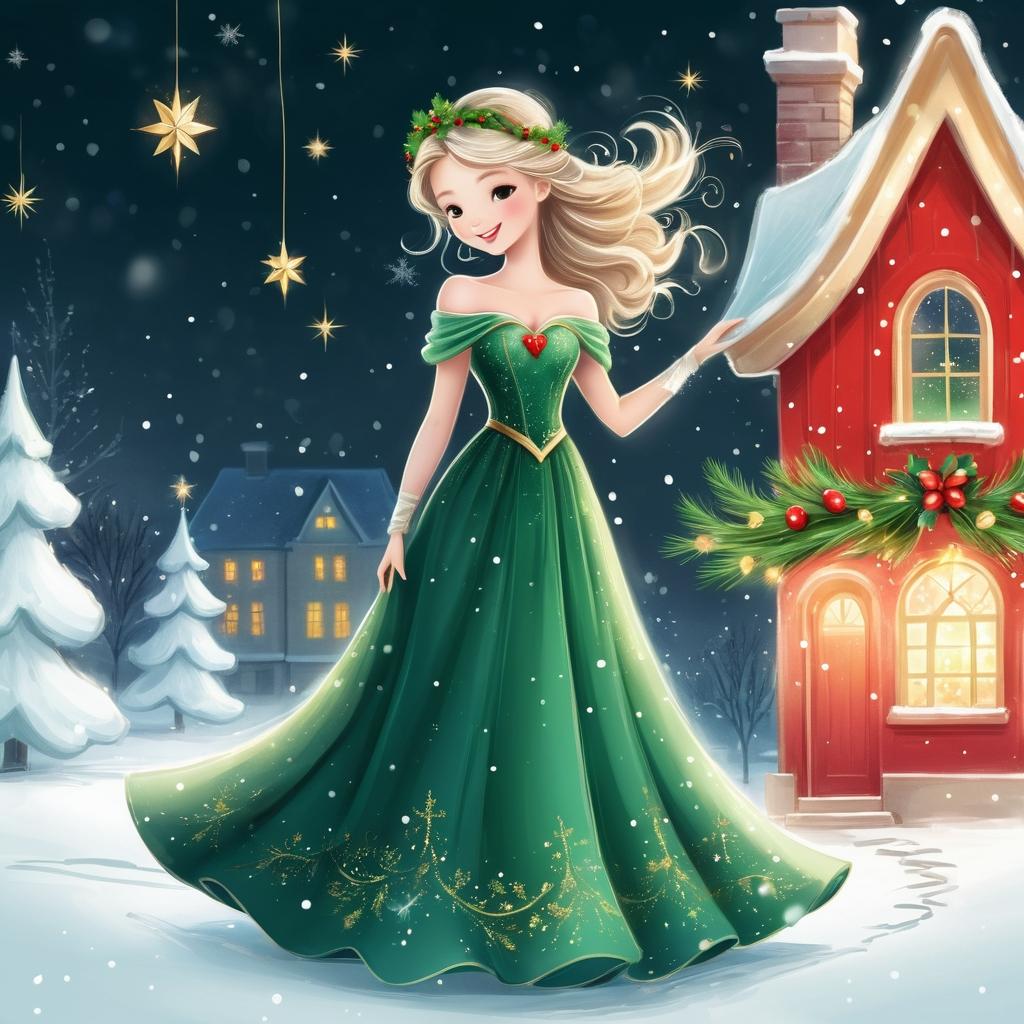 可以将人物的姿态和服装转化为圣诞卡的核心,通过添加背景中的圣诞树、雪花和灯光装饰,增强节日氛围。在背景中融入雪景和温暖的灯光效果,使用红色和绿色作为主要色调,强调节日的喜庆感。人物的卡通风格可以与圣诞节的童话主题相结合,创造出一个充满奇幻色彩的节日场景。