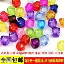 图片中包含多种颜色的透明塑料珠子,形态主要为多边形和不规则形状。颜色鲜艳,包括红色、紫色、黄色、绿色、蓝色等,呈现出多样化的色彩搭配。珠子的排列较为随意,整体风格活泼。