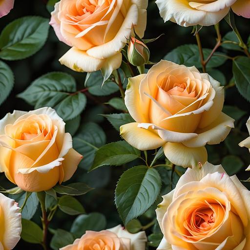 在这幅玫瑰花的摄影作品中,我们可以感受到大自然的独特魅力。橙色和奶油色的玫瑰在绿叶的衬托下,展现出一种宁静而又充满活力的美感。摄影师巧妙地利用了自然光,使花瓣的色彩更加鲜明,纹理更加清晰。通过对背景的模糊处理,成功地将观者的注意力集中在花朵上。为了进一步提升作品的艺术感,摄影师可以尝试使用不同的光影效果,如逆光或侧光,以增强花瓣的透明感和立体感。此外,通过调整拍摄角度,如从下往上拍摄,可以为花朵增添一种宏伟感。后期处理中,适当调整对比度和饱和度,可以让图像更具视觉冲击力。这样的作品不仅仅是对自然美的记录,更是对生命力的礼赞。