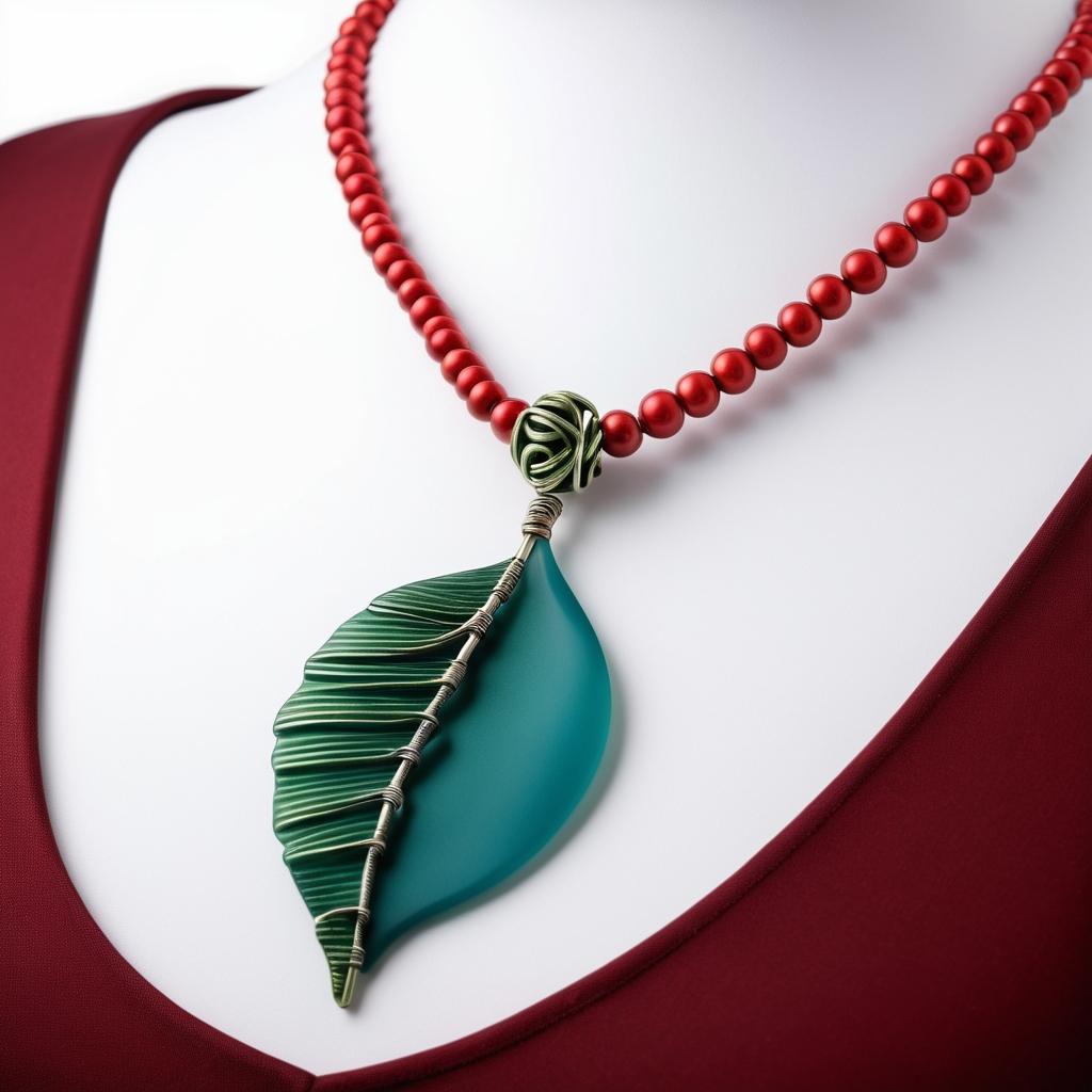 这幅手稿展示了一条受自然启发的串珠项链设计,结合了简约与活力。项链的设计通过绿色叶状和红色螺旋形状的珠子,体现了自然的生命力。底部的蓝色蝴蝶结则为整体设计增添了俏皮感。现代极简设计趋势强调对称性与不对称性的结合,通过减少珠子种类和创新配色,提升设计的现代感与实用性。使用磨砂玻璃和金属光泽等创新材料,可以进一步提升作品的艺术价值和功能性,使其在日常佩戴中既美观又实用。