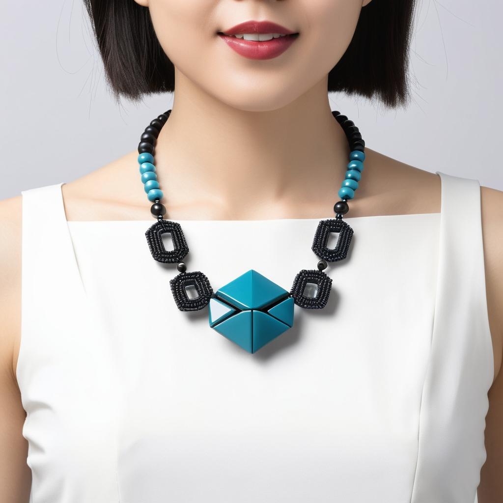 通过减少串珠的种类与数量,重点突出极简美感。结合椭圆形的对称性与不规则形状的创新排列,创造出简洁且具有动态美的设计。运用色彩的单一性和形状的重复性,提升作品的现代感。
