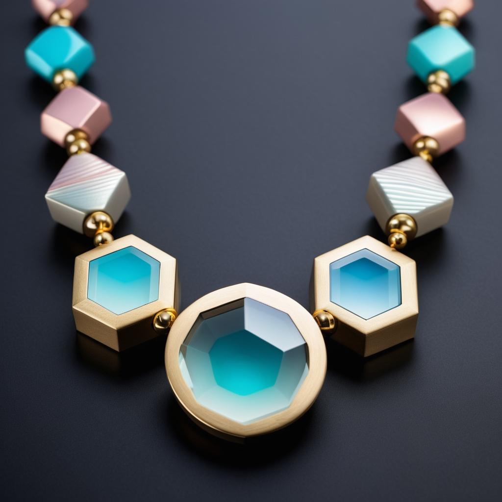 这款手稿设计通过几何形态与精致线条的结合,展现了现代简约珠宝设计的独特魅力。设计中的每一个曲线和形状都经过精心安排,形成了一种动态的平衡。色彩运用上,主要采用了低饱和度的蓝色和绿色,与白色形成柔和对比,增强了整体的时尚感。通过减少串珠的种类和数量,设计师巧妙地运用了留白和线条的延伸感,使作品在视觉上显得更加轻盈和现代。建议在设计中进一步使用磨砂玻璃与金属光泽的混合材料,以提升作品的质感和实用性,使其不仅符合现代审美趋势,还能在实际佩戴中展现出独特的个性。