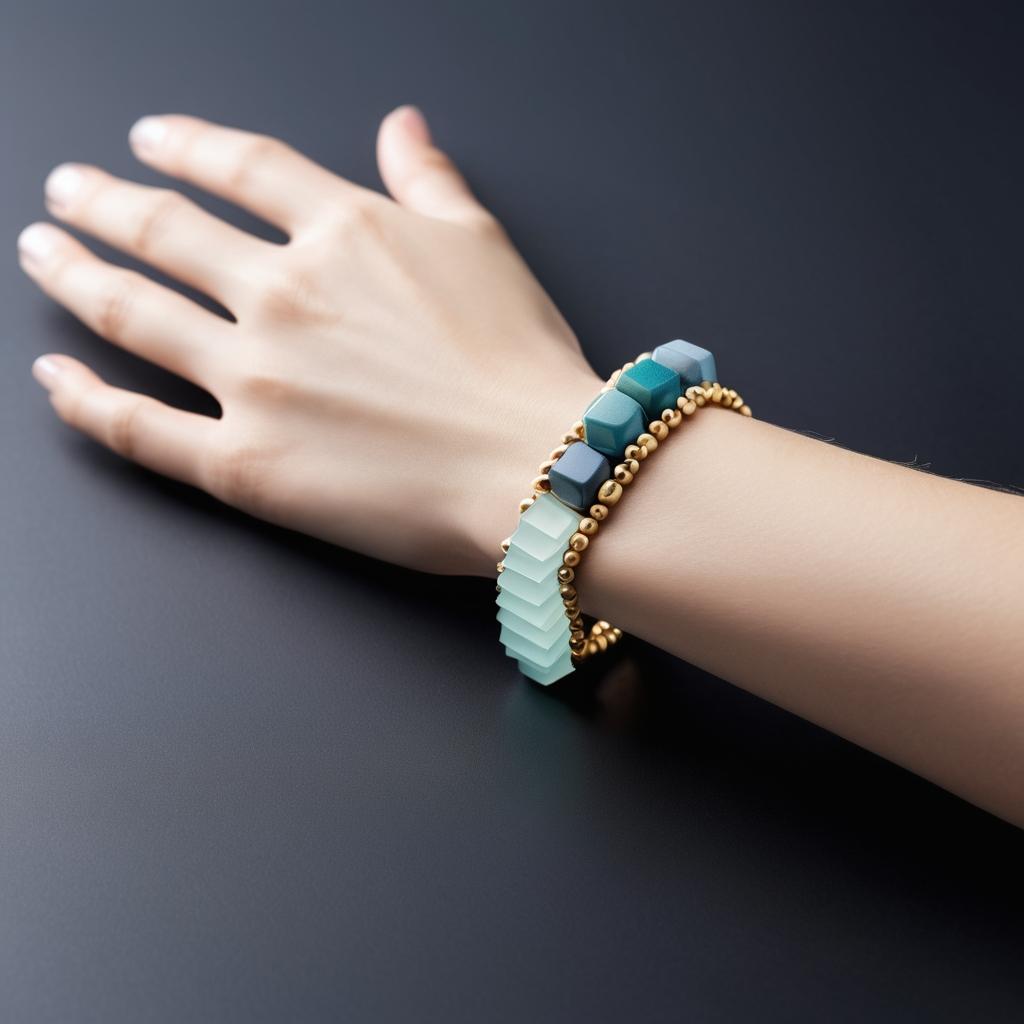 通过减少串珠种类与数量,突出极简美感。结合对称性与不规则排列,创作出既简洁又富动感的设计。运用留白和线条的延伸感,提升作品的空间感与现代感。建议创新配色,如渐变或低饱和色调。