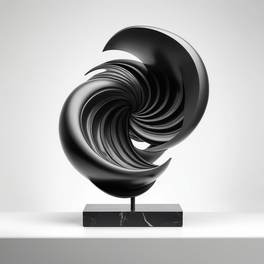 这个设计可以转化为一件具有强烈动感的雕塑作品。使用大理石或金属材质能更好地表现出线条的力量和动态感。雕塑应具有流畅的线条和清晰的几何形状,以简洁而富有表现力的形式展现。通过材质表面的处理,增强光影效果,使其在不同角度下呈现出不同的视觉效果,强化作品的空间表现力和艺术感染力。