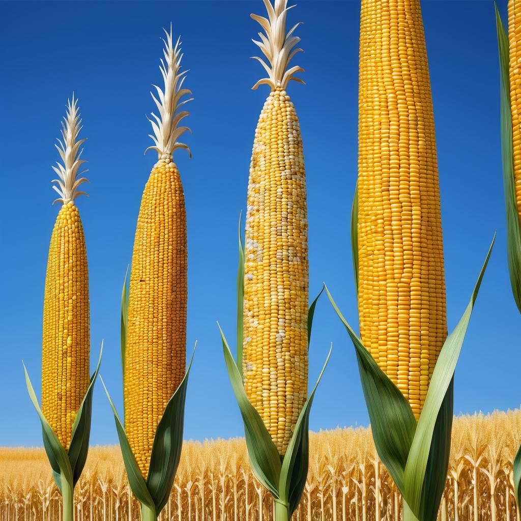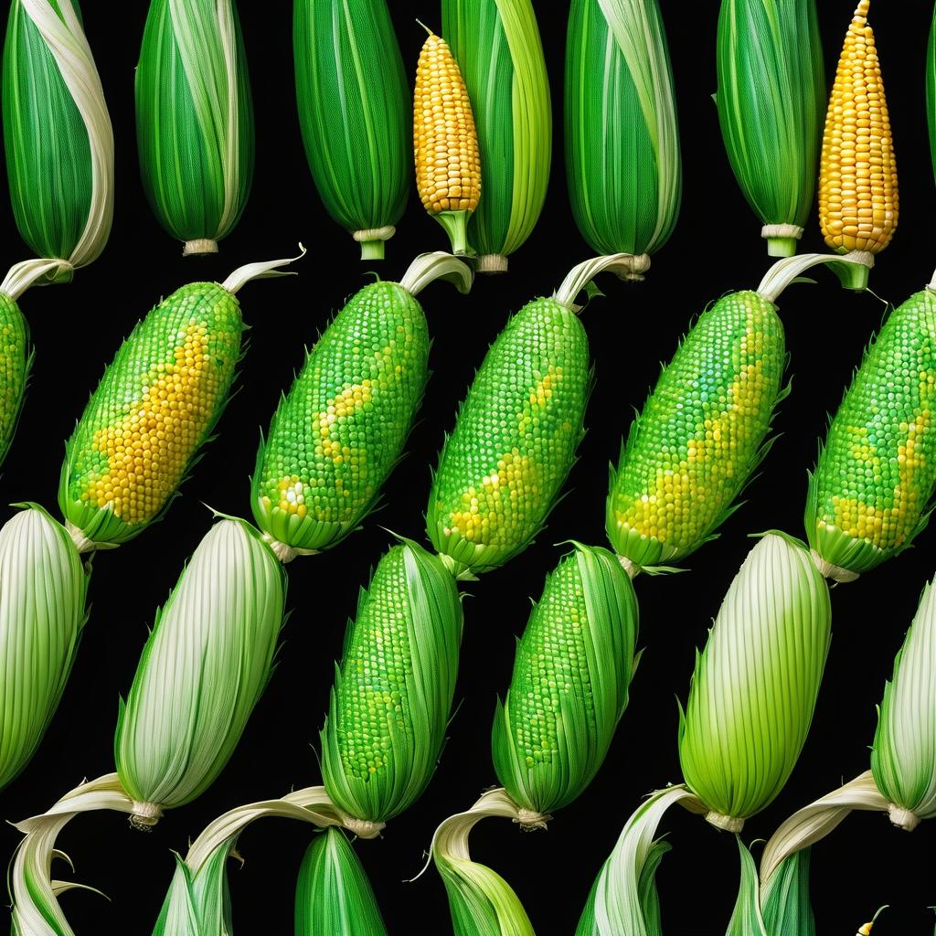 将玉米的自然形态转化为雕塑作品,可以通过夸张其纹理和形状来增强视觉效果。使用具有天然纹理的材料,如木材或陶瓷,来重现玉米颗粒的细腻细节。考虑在雕塑表面应用多层釉彩,以实现类似的色彩深度和光泽。可以通过交错的排列方式,营造一种动态的节奏感,仿佛一阵风吹过玉米田,增强作品的空间表现力。