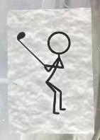 这幅作品采用极简主义风格,通过简单的线条勾勒出一个打高尔夫球的人物形象。背景为白色纹理纸张,突出主体。线条流畅,构图简单明了,传达出一种轻松与幽默的氛围。