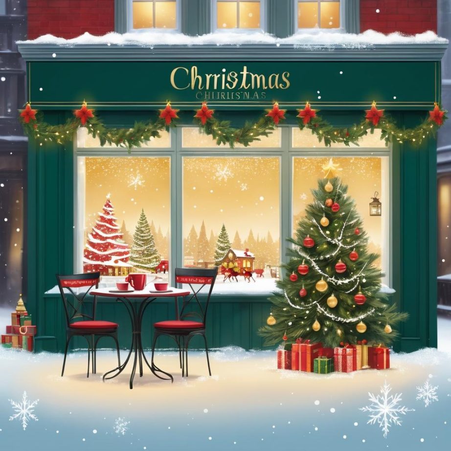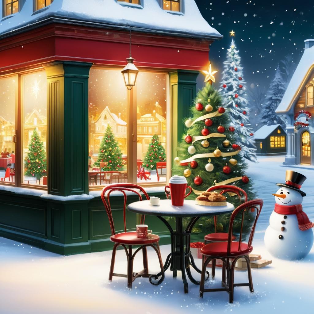在这张图片中,我们看到了一位享受咖啡时光的人物,这种轻松惬意的姿态为圣诞贺卡设计提供了丰富的灵感。通过在背景中添加圣诞树和闪烁的灯光,我们可以将这幅城市街景转化为充满节日气氛的画面。雪花的轻轻飘落,不仅增添了画面的动态美感,也为整个场景带来了冬日的寒意和节日的温暖。将人物的自然笑容与节日元素结合,能够更好地传达出节日的宁静与喜悦。通过使用暖色调的灯光效果,我们可以增强画面的温馨感,使这张圣诞贺卡成为送给亲友的完美节日祝福。