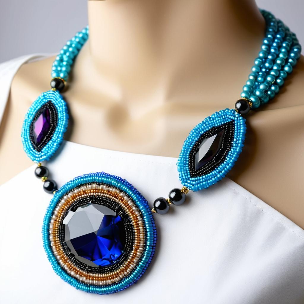 这幅图案通过鲜艳的色彩和独特的形状,展示了如何在珠宝设计中实现色彩与形态的平衡。中心椭圆形的设计提供了视觉焦点,而周围多边形的花瓣则引导目光向外扩散。这样的设计不仅增强了整体的对称感,还通过色彩的对比和渐变效果增加了视觉层次。在当代珠宝设计中,这种运用色彩与形态的技巧,可以帮助创造出既具艺术感染力又实用的作品。在设计趋势中,融合传统工艺与现代设计理念的串珠作品越来越受到欢迎,这启发了我们在设计中大胆运用色彩和形状,以实现独特的视觉效果。