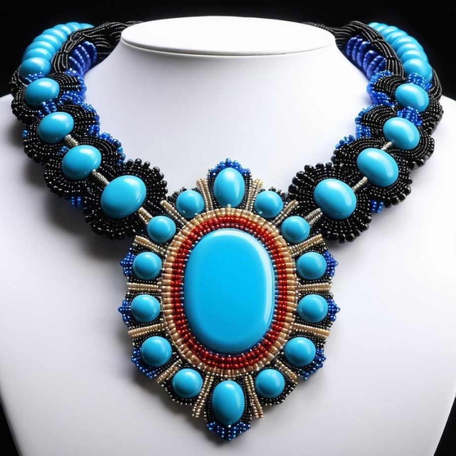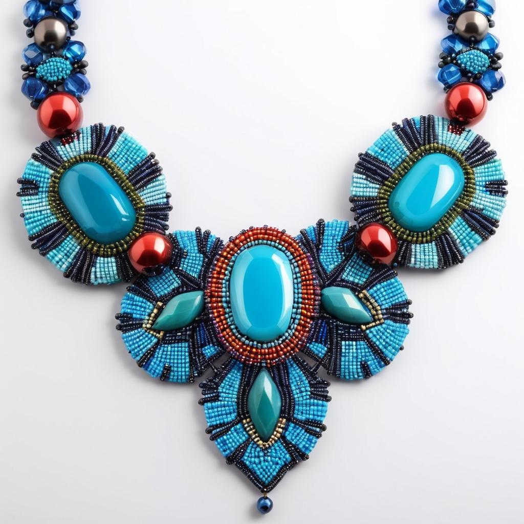 这幅图案通过鲜艳的色彩和独特的形状,展示了如何在珠宝设计中实现色彩与形态的平衡。中心椭圆形的设计提供了视觉焦点,而周围多边形的花瓣则引导目光向外扩散。这样的设计不仅增强了整体的对称感,还通过色彩的对比和渐变效果增加了视觉层次。在当代珠宝设计中,这种运用色彩与形态的技巧,可以帮助创造出既具艺术感染力又实用的作品。在设计趋势中,融合传统工艺与现代设计理念的串珠作品越来越受到欢迎,这启发了我们在设计中大胆运用色彩和形状,以实现独特的视觉效果。
