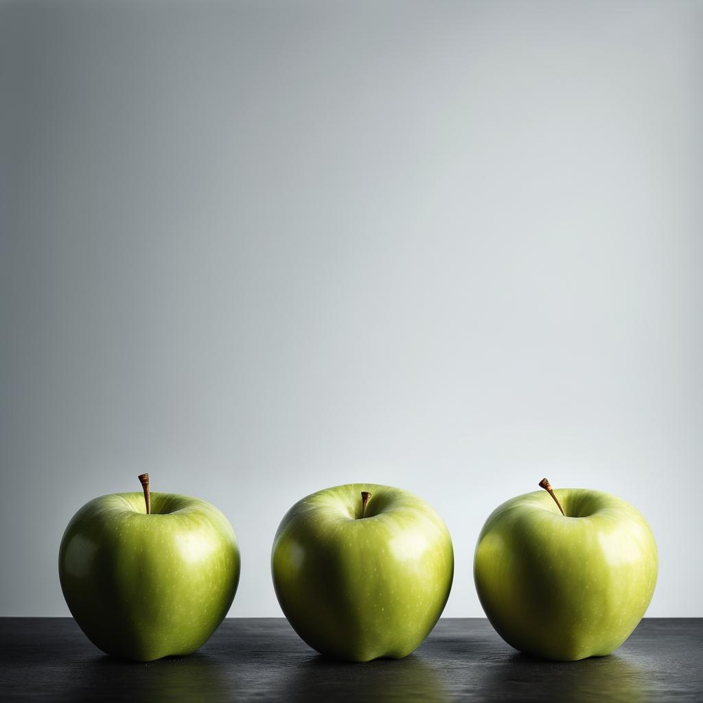 这幅作品通过简单的静物构图,成功地传达了自然的纯净与和谐。为了提升作品的艺术性,可以在光影上进行更深入的探索。利用柔和的侧光照射,增强苹果表面的质感与阴影变化,使其更具立体感。同时,考虑在背景中加入一些柔和的色调渐变,或者使用浅色木质纹理桌面作为背景,以增加作品的层次感和温暖氛围。此外,适度调整苹果的排列方式,使其在画面中形成更具动感的构图,增加视觉趣味性。