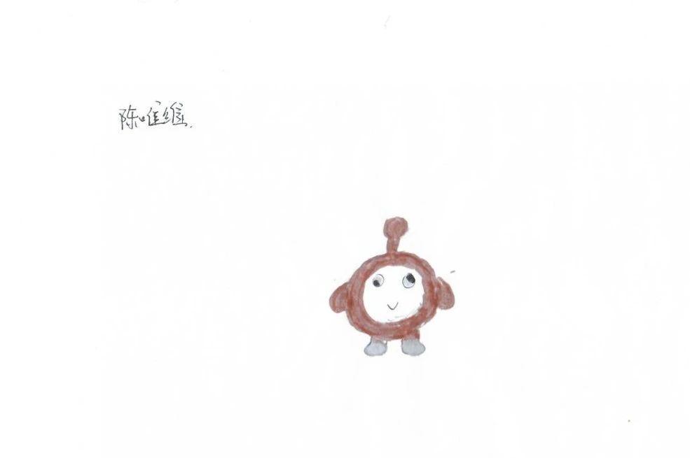 这幅手稿呈现了一个简单而可爱的卡通形象,色彩运用温和,线条简洁。整体构图偏向于右侧,留白部分创造了开放的空间感。形象的眼神和微笑传递出一种天真无邪的情感。色彩使用上较为单一,主要是棕色和灰色,增加了形象的亲和力和温馨感。