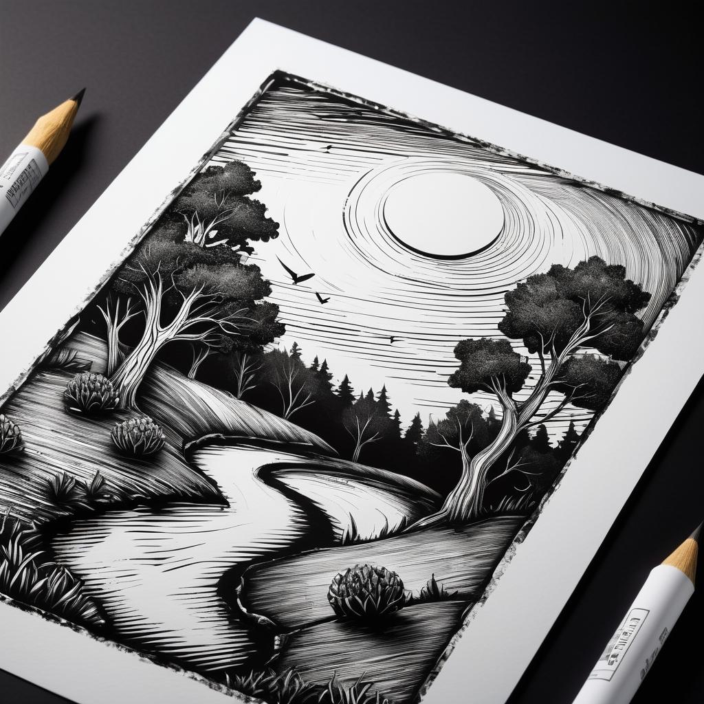将此手稿作品转换为版画风格,可以通过增强线条感和色彩对比来实现。可以在构图中加入更多的线条细节,使其更具版画的刻画感。在色彩上,采用更强烈的对比色调,如黑白或深棕与白色的搭配,使图像更具深度。同时,利用简化的形状和纹理来表现出卡通形象的活泼与可爱。通过这些调整,作品可以升华为一个更具深度、艺术价值和情感共鸣的版画作品。