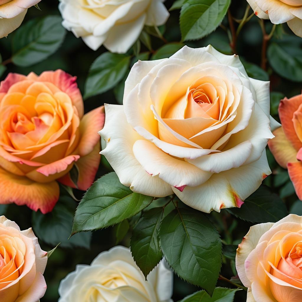 在这幅玫瑰花的摄影作品中,我们可以感受到大自然的独特魅力。橙色和奶油色的玫瑰在绿叶的衬托下,展现出一种宁静而又充满活力的美感。摄影师巧妙地利用了自然光,使花瓣的色彩更加鲜明,纹理更加清晰。通过对背景的模糊处理,成功地将观者的注意力集中在花朵上。为了进一步提升作品的艺术感,摄影师可以尝试使用不同的光影效果,如逆光或侧光,以增强花瓣的透明感和立体感。此外,通过调整拍摄角度,如从下往上拍摄,可以为花朵增添一种宏伟感。后期处理中,适当调整对比度和饱和度,可以让图像更具视觉冲击力。这样的作品不仅仅是对自然美的记录,更是对生命力的礼赞。