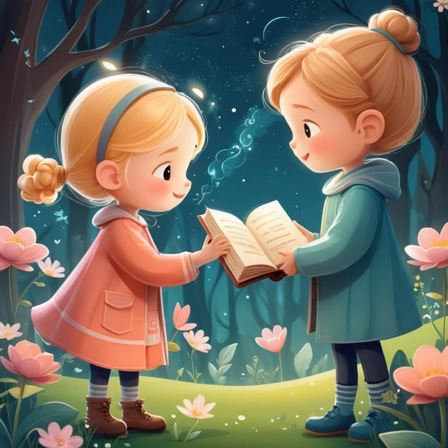 可以将这两个简单的人物设计为在一个充满幻想的花园中探险的小精灵,利用他们的表情和姿态来展现对自然的好奇与探索。通过添加更多梦幻元素,如发光的花朵或会飞的书本,增加插画的互动性和情节感。