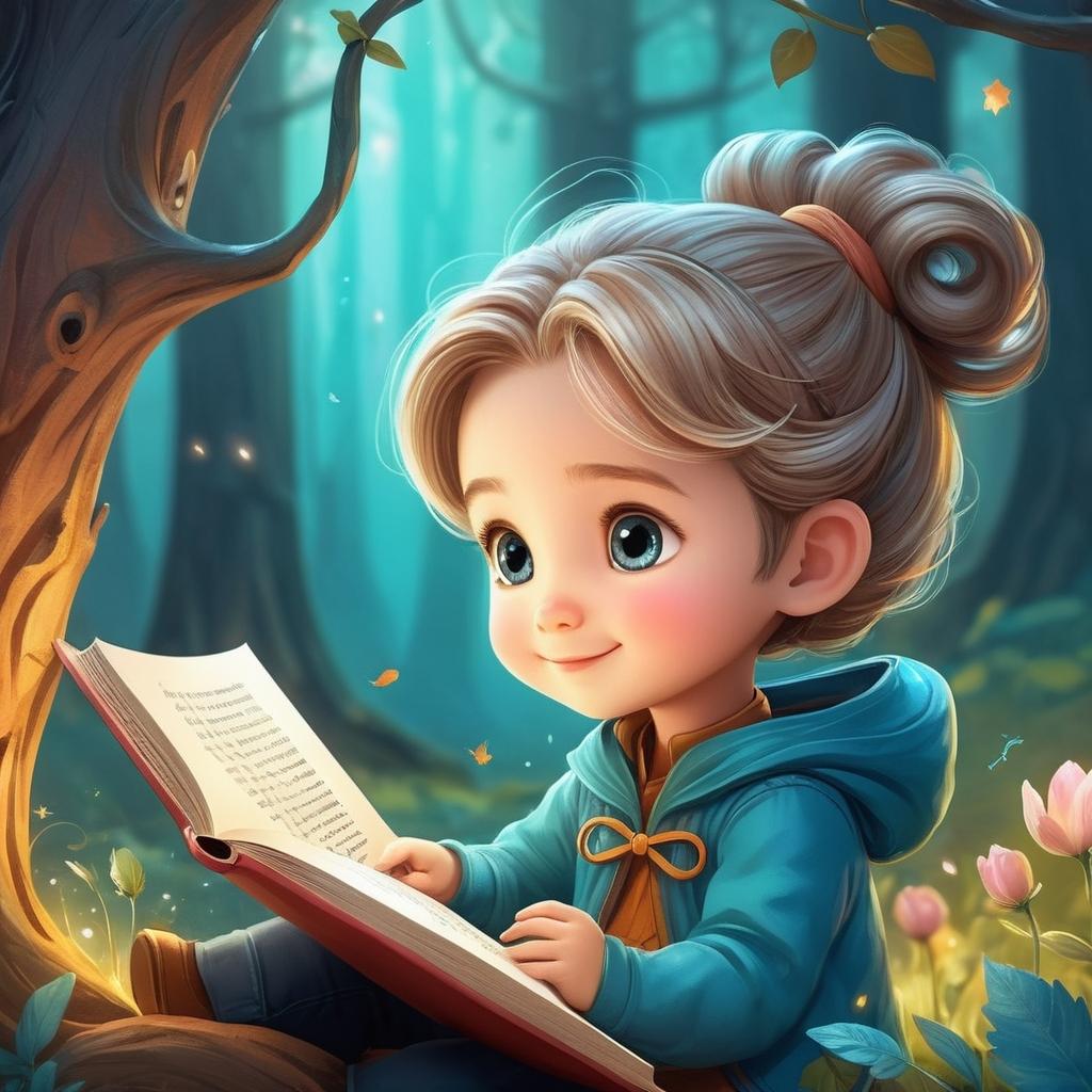 将小女孩的形象融入一个幻想的场景,如魔法森林或漂浮的图书馆。进一步抽象化服装与动作,设计出互动性强的场景,比如女孩用网兜捕捉发光的蝴蝶或小精灵。