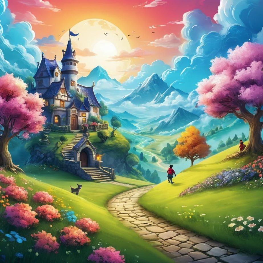 在简单的线条画中,具象物体诸如人物和自然元素,通过艺术家的创意可以转化为生动的童趣插画。通过赋予太阳和云朵角色化的特征,并与人物互动,增强了画面的叙事性。通过色彩渐变、光影效果和细节的丰富,使得整体作品更加引人入胜。这种设计方式不仅仅增强了视觉吸引力,还为插画注入了浓厚的故事情感,使观众能在欣赏中产生共鸣。