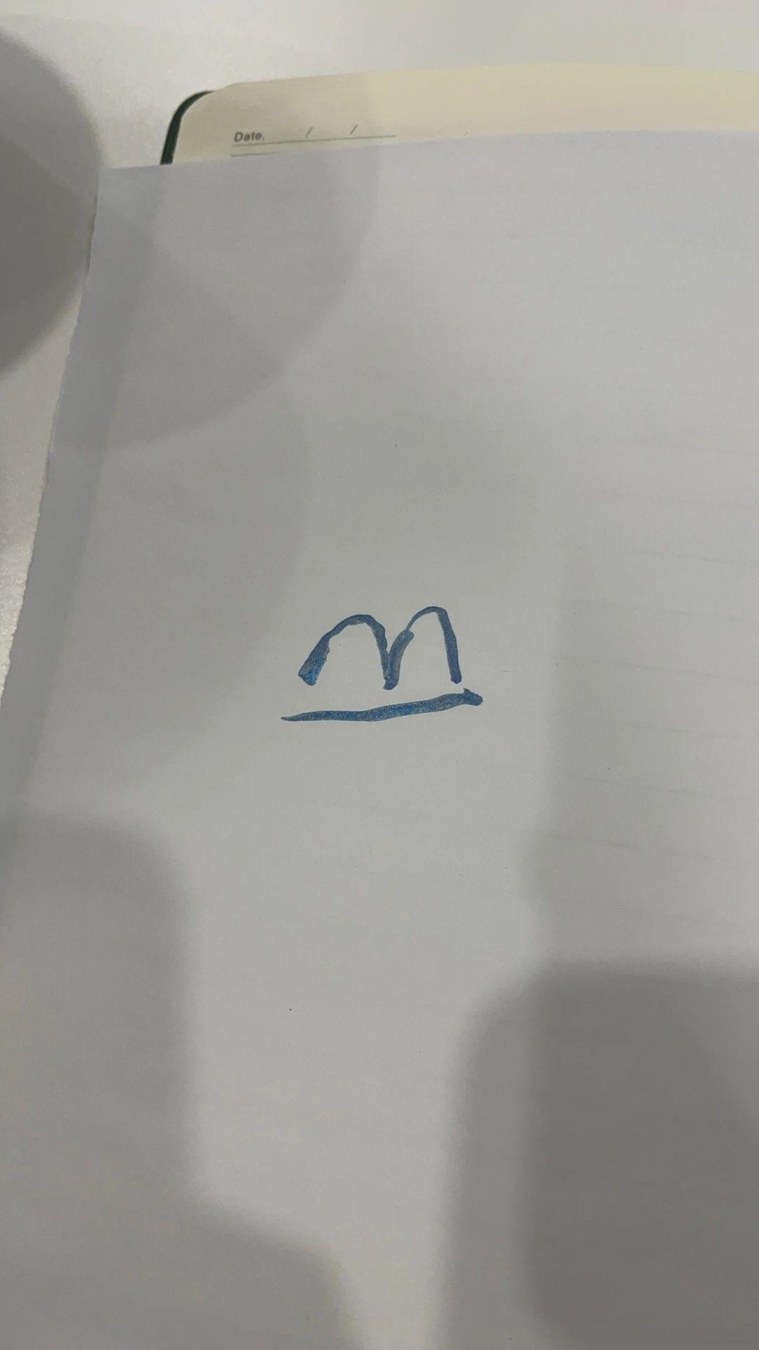 这幅简单的插画包含一个蓝色的线条图案,形似字母 ‘M’。它位于一张白纸上,背景无其他明显的具象或虚构物体。该图案可能代表某种符号或标志。