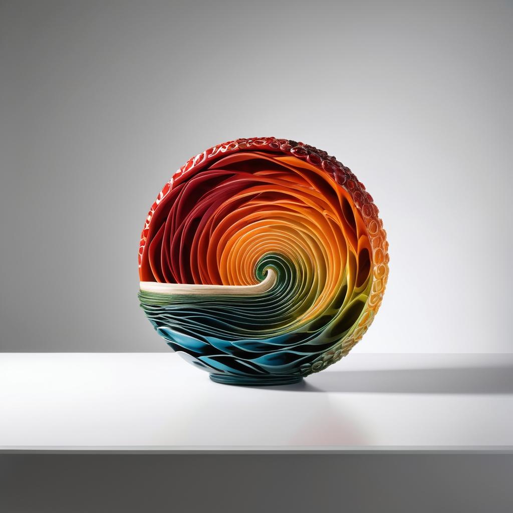 这幅寿司切面的作品通过丰富的色彩和细腻的质感,为雕塑创作提供了无尽的灵感。每一种食材的颜色和纹理都可以在雕塑中得到体现,使用不同的材质如大理石或玻璃,不仅可以捕捉食材的本质,还可以在视觉上增强雕塑的层次感。圆形的构图象征着生命的完整与循环,这种概念在雕塑设计中可以通过螺旋形态或圆形形式得以表现。通过光影的细腻运用,雕塑在不同的角度下展现出多变的视觉效果,增强了作品的动态表现力。雕塑设计不仅在形式上追求美感,更在情感上与观众产生深刻共鸣,使其能够从中感受到自然的和谐美与生命的活力。