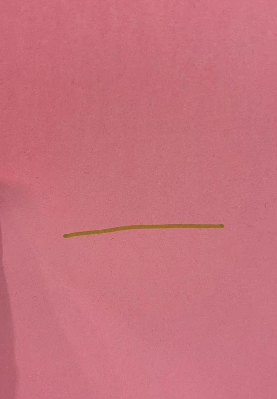 这幅作品以极简的方式呈现,仅由一条简单的线条构成,背景为柔和的粉色。这种极简主义风格强调了色彩的使用及其在空间中的影响。线条的水平延伸创造了一种平静和稳定的感觉,而粉色背景则赋予其柔和与温暖的情感。整体构图的平衡通过线条的简洁得以体现,展现出一种静谧与沉思的氛围。
