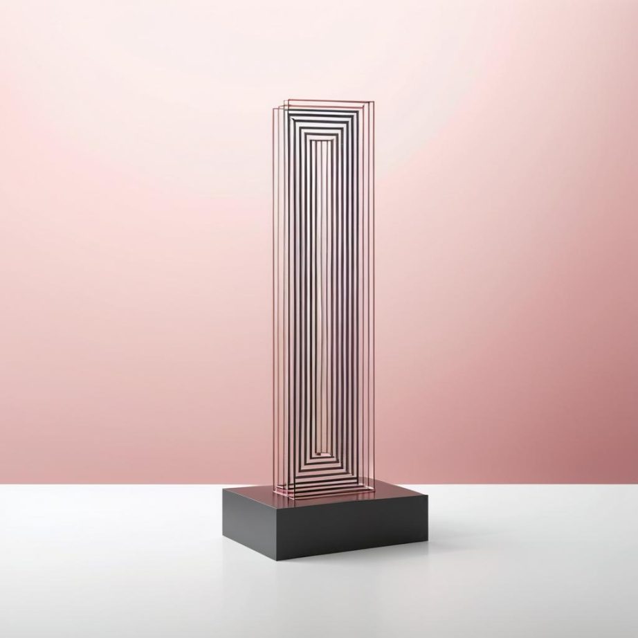这幅作品通过极简的元素,展现了色彩与线条在空间中的微妙关系。简单的线条在粉色背景中显得尤为突出,传递出一种安静与和谐的情感。极简主义强调去除多余的细节,通过基本元素来传达深刻的思想与情感。这种风格在雕塑设计中同样可以运用,通过选择合适的材料与光影效果,雕塑设计师能够将这种简洁的美学转化为具体而有力的三维形式。艺术创作的魅力在于它能够在有限的元素中蕴含无限的表达可能,为观众提供一个静谧而深邃的思考空间。