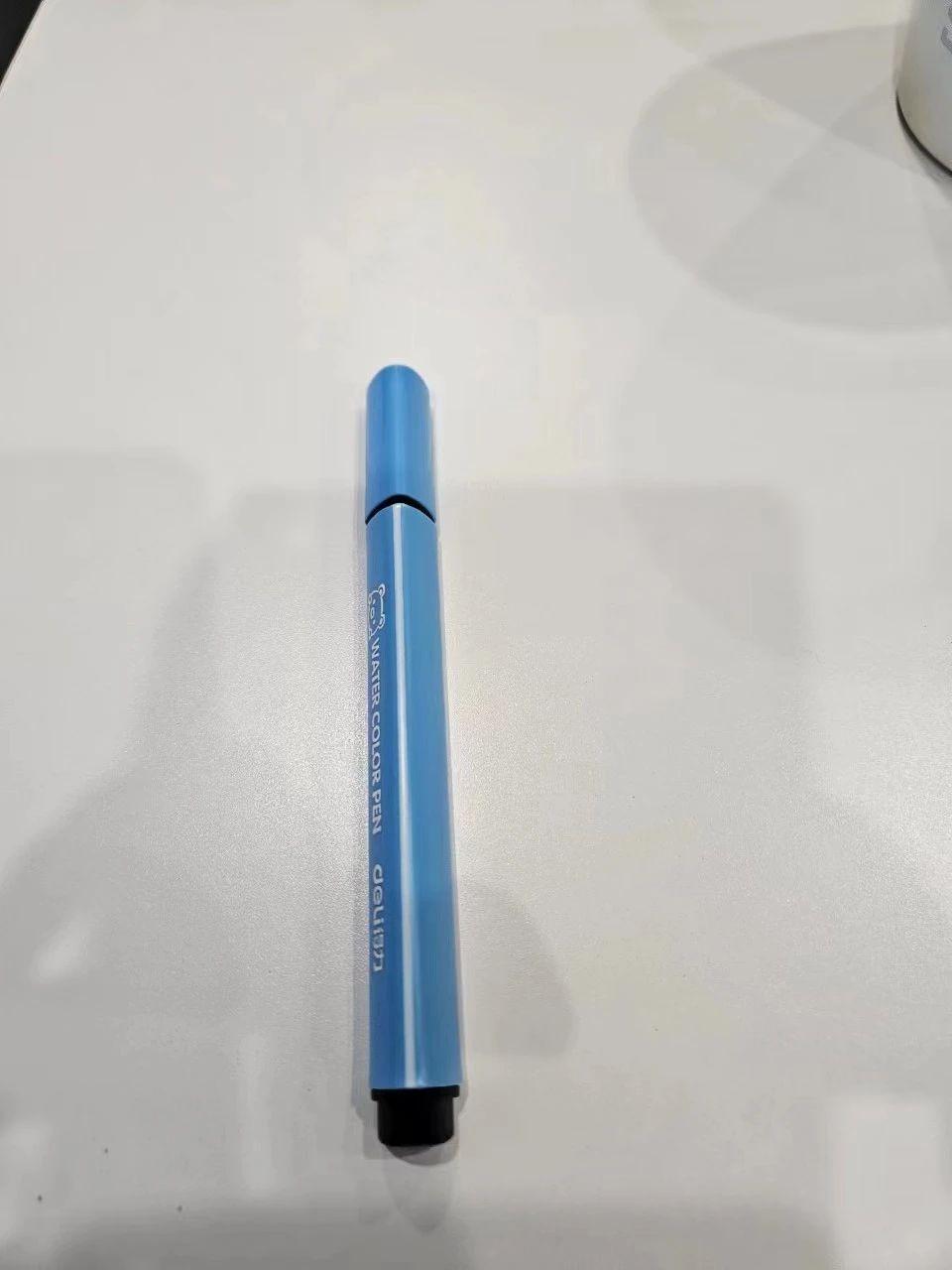 这幅作品展现了一支简约的水彩笔,背景干净,整体构图简洁。笔的蓝色调传递出一种冷静和理性的情感,塑料材质的光泽感与光影效果相结合,表现出一种现代感。背景中的模糊阴影增添了画面的层次感,而笔的直线条则带来一种平衡与秩序感。这种极简风格可以为羽绒服设计提供灵感,强调功能性和简约美学。