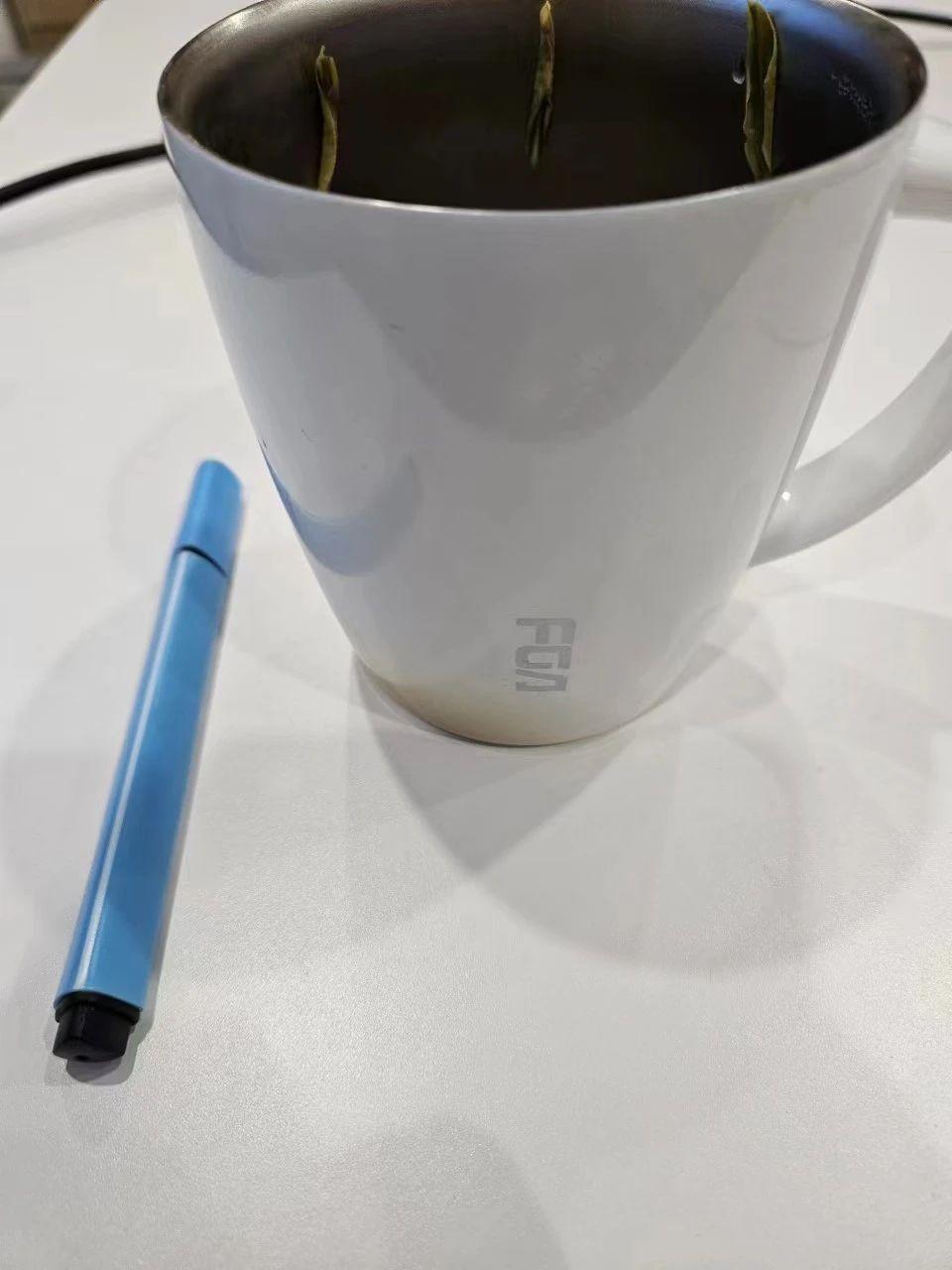 从这张照片中,我们可以将白色陶瓷杯的圆润造型转化为羽绒服的流畅剪裁,其光滑的表面可以通过选择光泽感面料来体现。而蓝色笔的色调则可用于羽绒服的配色设计,作为点缀色形成视觉焦点。茶叶的元素可以通过细节绣花或压纹技术加入到设计中,增加服装的层次感与趣味性。最终的设计应该由真人模特展示,以体现羽绒服的质感和实穿性。