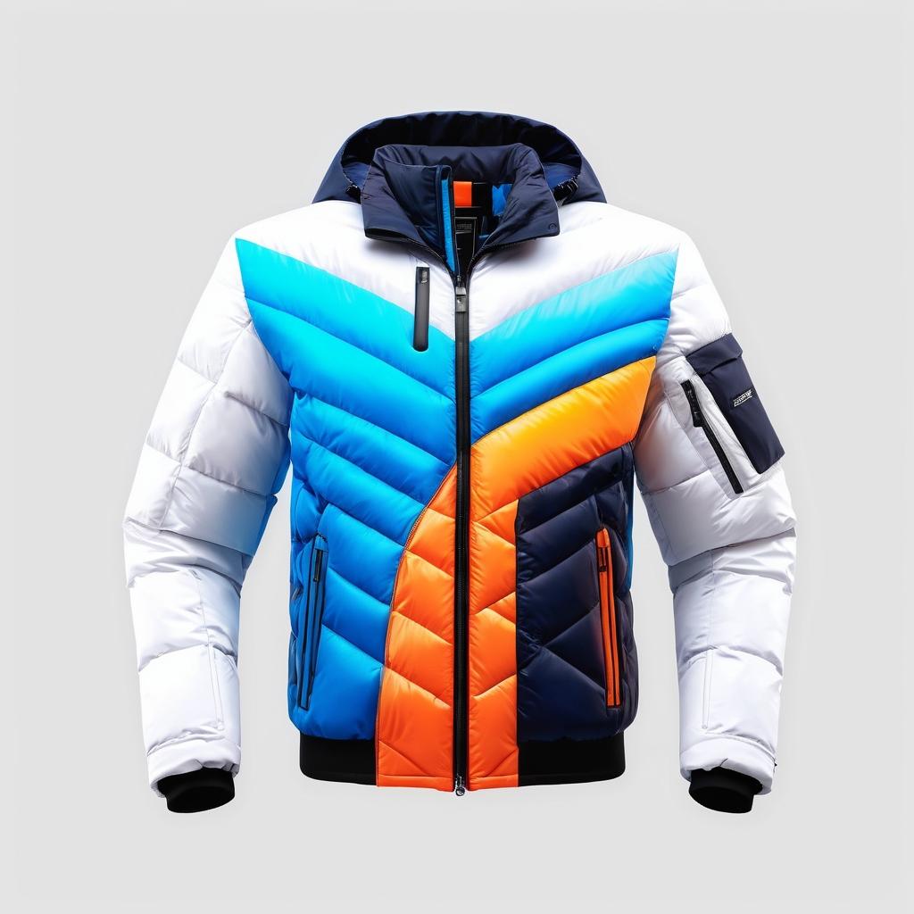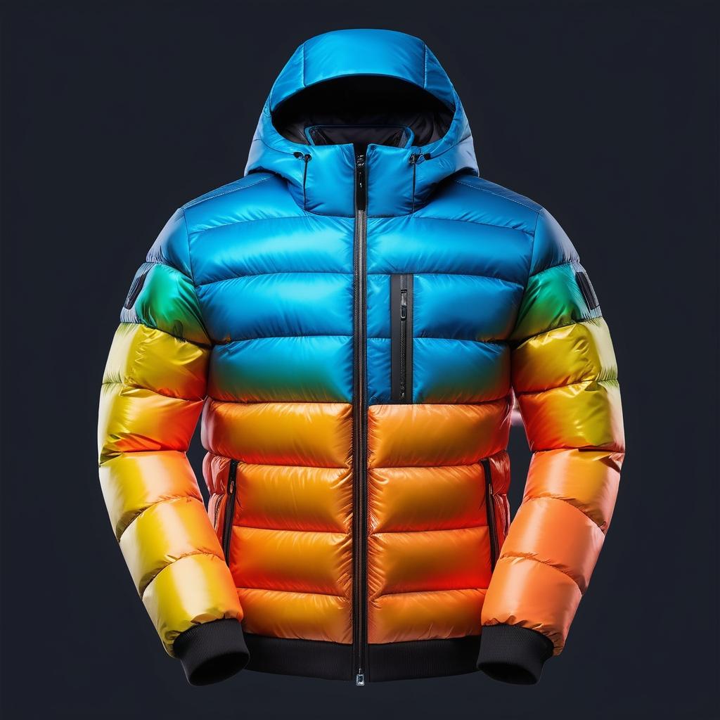 从这张照片中,可以看到饮料的多样色彩及排列的几何美感,值得在羽绒服设计中加以体现。色彩的搭配可以运用到羽绒服的面料选择中,采用对比色或渐变色的拼接设计,增强视觉冲击力。同时,瓶形的线条也可以启发羽绒服的剪裁,创造出流畅而富有结构感的设计。瓶盖与拉环的细节可以转化为功能性拉链或纽扣的设计灵感,使羽绒服在细节上更加精致。最后,确保最终设计由真人模特展示,通过模型的动态展现出服装的舒适性与时尚感。