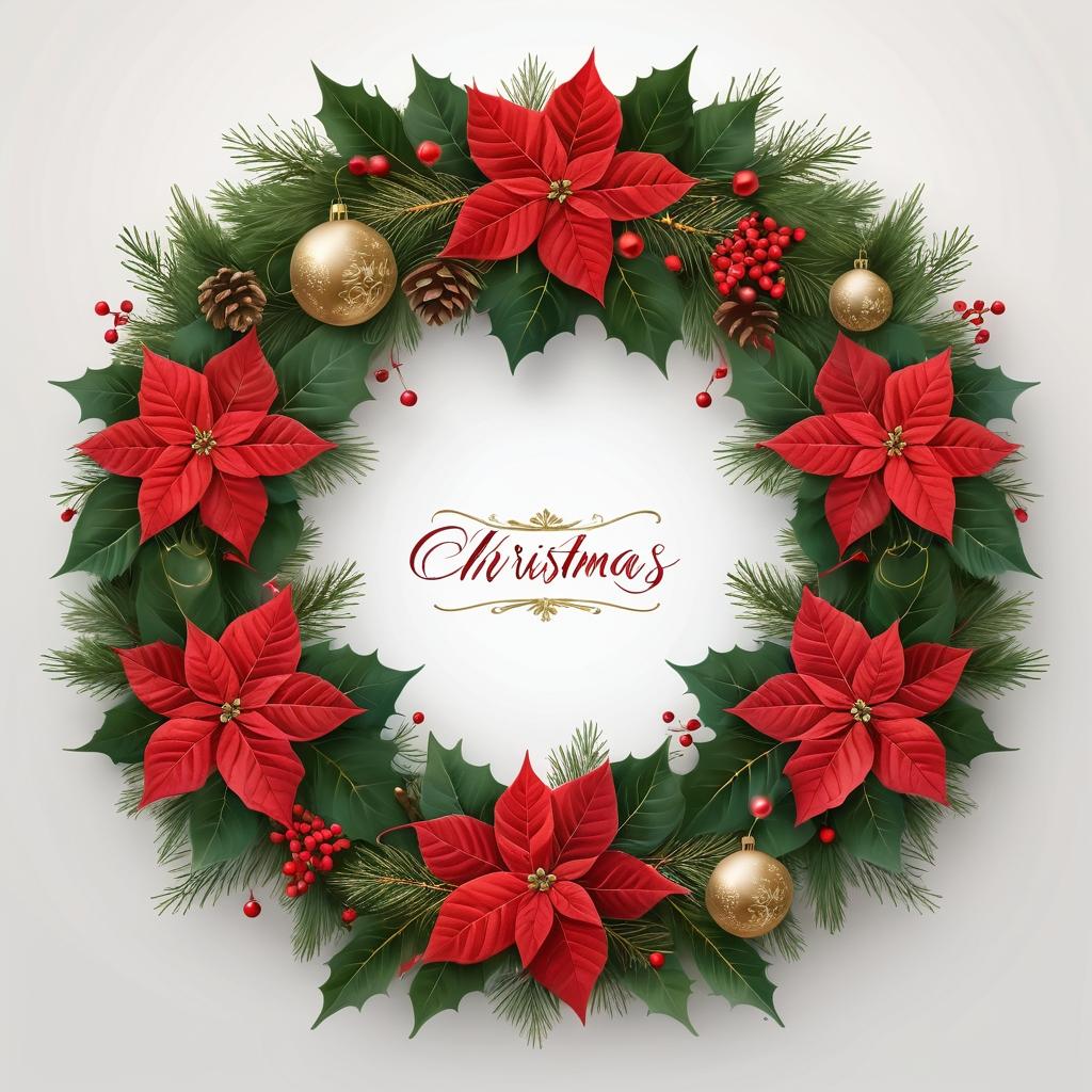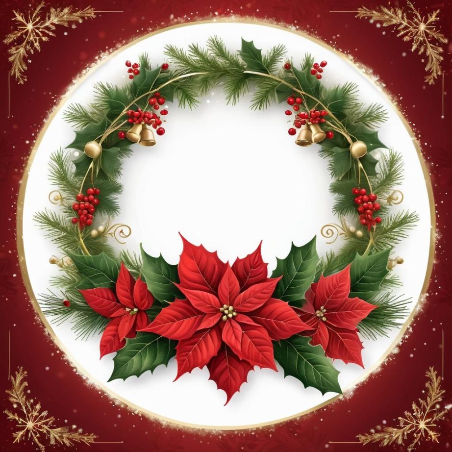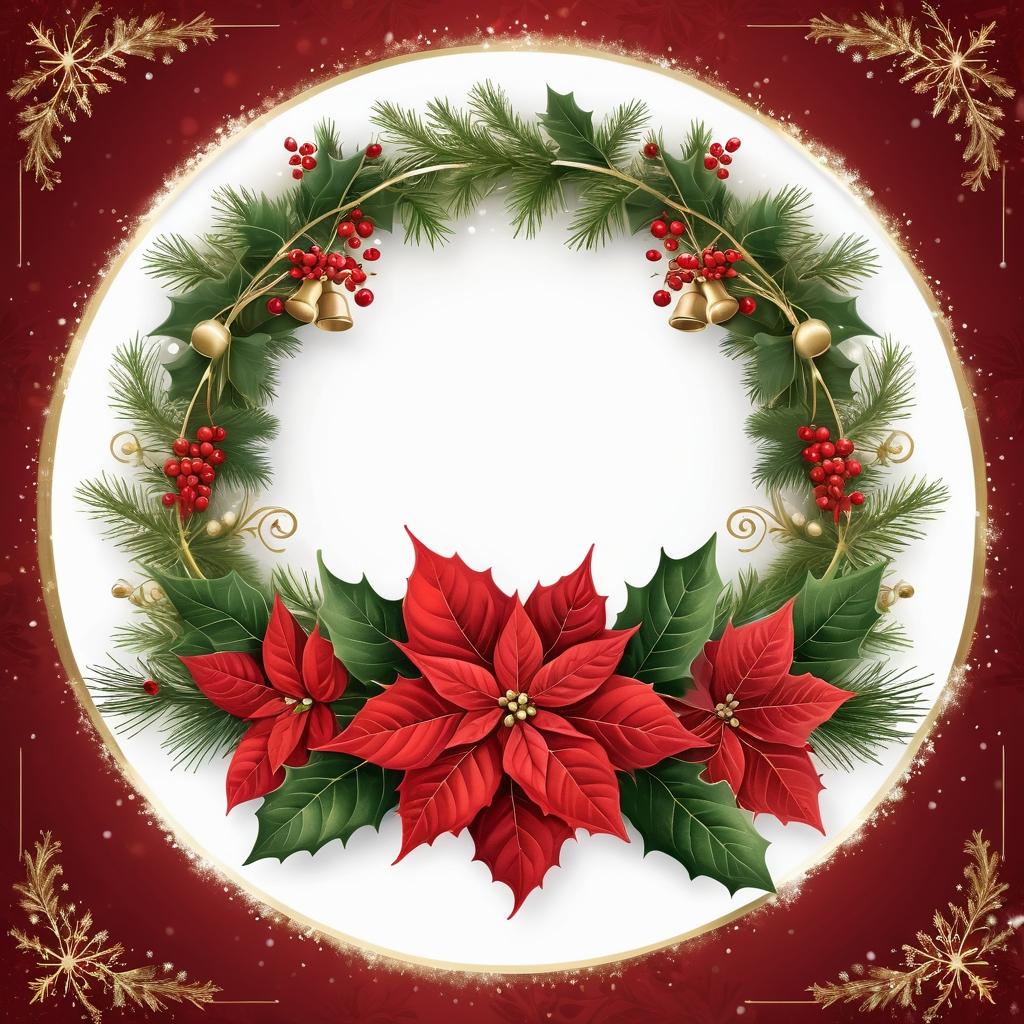 利用圣诞花的红色作为设计的核心元素,可将其环绕在一个简约的圣诞树形状周围,背景加入柔和的灯光效果和白色雪花点缀,以增强节日氛围。可以在花朵中间添加几颗小型金色铃铛,增加视觉趣味性和节日感。