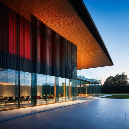 作品中,幾何形狀和線條的運用使建築呈現出強烈的現代感。這樣的構圖可以進一步強調對稱性和比例,增加畫面的平衡感。同時,建議在光影上做更多的探索,比如利用黃昏或清晨的柔和光線,創造更豐富的色彩層次。這將賦予圖片更多的情感深度,讓觀者感受到空間的廣闊與寧靜。此外,可以考慮加入一些植物元素,使畫面更加生動和自然,這樣的對比會讓建築更加突出。