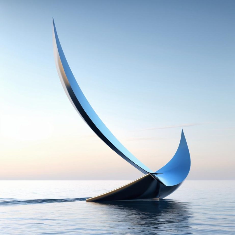 可以将这幅简约的手稿转化为一件具有现代感的雕塑作品。通过使用光滑的金属材料和简单的几何形态,加强船体和人物的表现力。雕塑的底座可以设计成波浪形,以增强水的动态元素。简化但富有表现力的造型能够传达出一种探索的精神,同时又保留了手稿的稚拙和趣味性。整体设计将通过形状和体积的对比,突出雕塑的空间表现力和视觉吸引力。