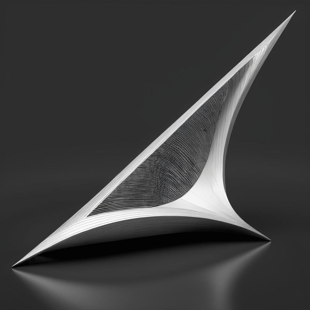 这幅简单的手稿以其简约的线条和几何形状,传达了一种纯真的冒险精神。通过简化的视觉语言,作品暗示了探索与发现的主题。将此手稿转化为雕塑设计,需保留其轻松愉悦的氛围,并通过材质和形式的选择增强其艺术表现力。金属材料的使用可以增加雕塑的现代感,同时波浪形底座则增加了动感元素。设计师可以从这种简单的图像中汲取灵感,创造出具有视觉冲击力和情感深度的艺术作品。