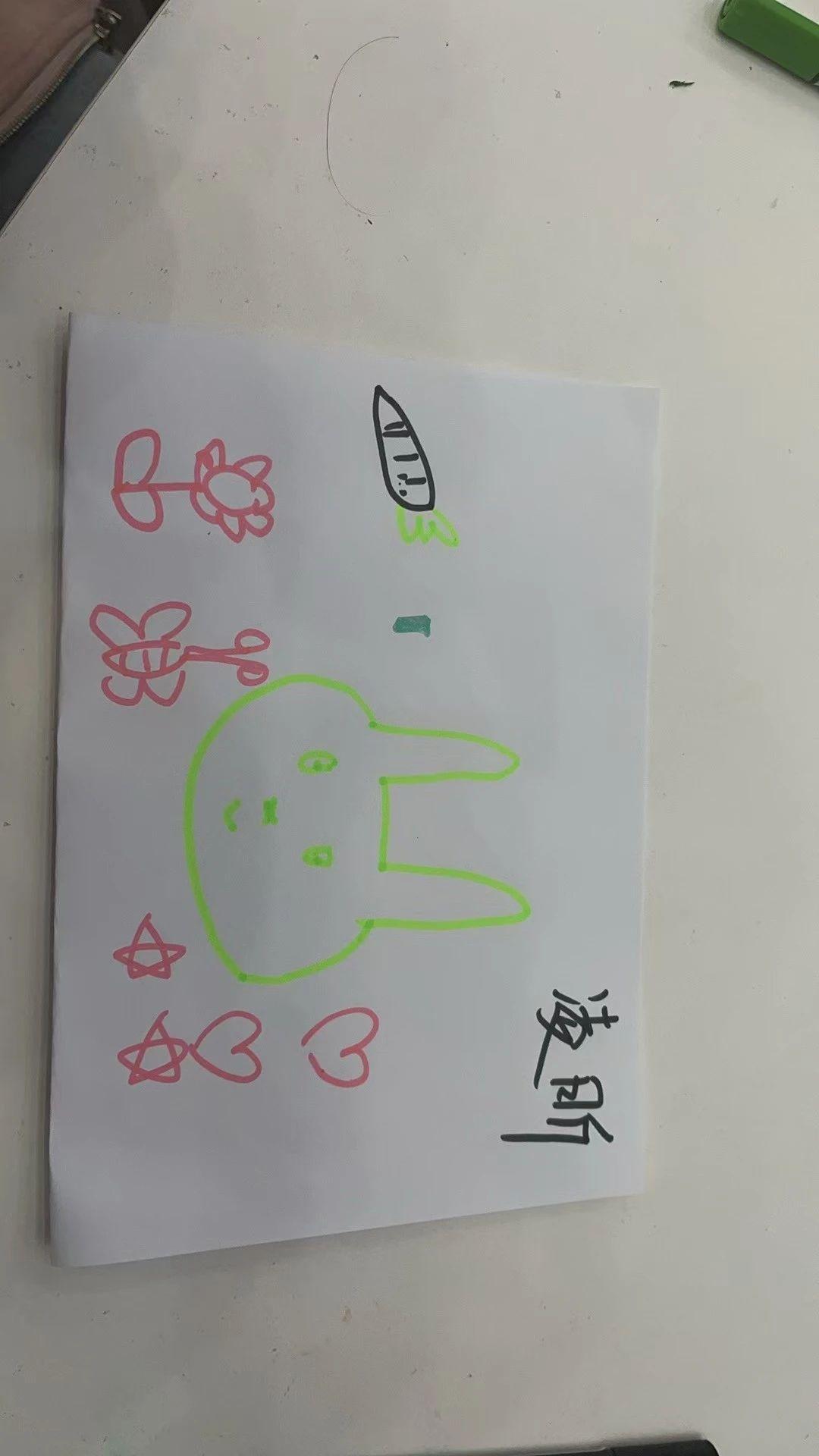 这幅作品展现了童稚的纯真和想象力。通过简单的线条和鲜艳的色彩,作者营造了一种轻松愉悦的氛围。为了提升这幅作品,可以尝试在背景中增加一些渐变色调,增加空间感。同时,细化花朵和星星的细节,可能会使画面更具吸引力。通过引入一些对比色,能够进一步增强视觉冲击力。为了在儿童艺术领域中脱颖而出,鼓励添加更多的故事元素,例如赋予兔子一个小伙伴或一个简单的场景背景,以激发观众的想象力。