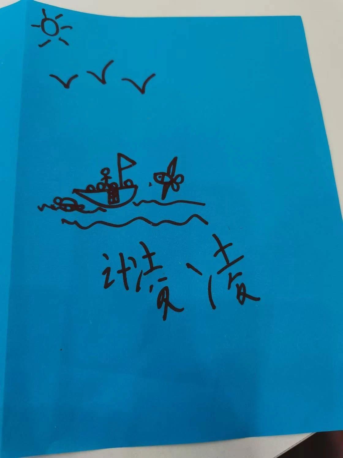 这幅作品充满了童趣与想象力,简单的线条和明快的色彩勾勒出一个自由自在的海洋世界。蓝色的背景象征着广阔无垠的大海,而黑色的线条则将船只、海鸥和太阳勾画得栩栩如生。这种风格让人联想到Joan Miró那种天真而富有幻想的艺术表现手法。透过这些简单的图案,创作者可能希望传递一种无拘无束的快乐感,仿佛在大海上航行的船只正驶向自由的远方。作为儿童艺术专家,我建议可以通过添加更多动态元素和丰富的细节来提升作品的表现力。例如,在海洋中加入一些色彩斑斓的鱼群,在天空中绘制变化多端的云彩,能够使整个画面更加活泼生动。同时,运用对比色来增强画面的视觉冲击力,使作品在色彩和情感上更加鲜明,吸引人的目光。这种添加细节与色彩对比的方式,不仅能增强作品的艺术性,也能激发观众的想象力和共鸣,使其更具观赏性和收藏价值。