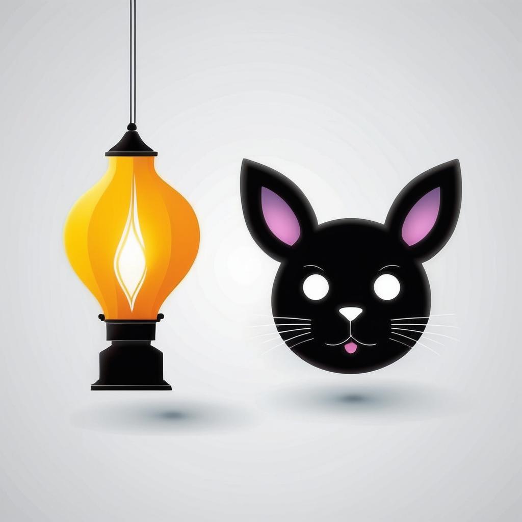 画面展示了简洁的线条画,主要元素包括一个卡通风格的动物头像和两个灯笼形状的图案,以及一只手拿着圆形物体。整体风格简单而富有趣味,传达出一种轻松愉悦的情感。