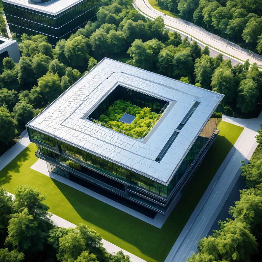 在现代建筑摄影中,如何将建筑物与周围环境和谐地结合并呈现出独特的美感,是一项挑战。这幅作品通过俯视视角,展示了校园中一座别具一格的建筑屋顶,其几何设计和对称性在画面中尤为突出。背景中高低错落的建筑群和远处的城市天际线,构成了丰富的层次感,仿佛在述说着建筑与自然的对话。色调上,建筑的暖色调与周围绿树的冷色形成鲜明对比,进一步烘托出宁静而协调的氛围。在创作过程中,可以通过光影的变化来丰富作品的层次。例如,选择清晨或傍晚的光线,使建筑表面的纹理更为明显,从而增强视觉的立体感。此外,引入动态元素,如风中摇曳的树叶或天空中漂浮的云彩,也为作品增添了一份生动之感。通过对色调和对比度的调整,进一步强调建筑与自然环境之间的和谐关系,使之成为一幅兼具视觉冲击力和情感深度的作品。