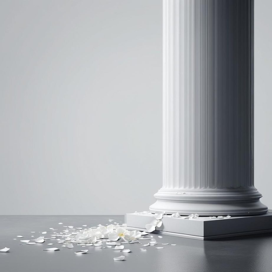 这幅作品以简单的线条构成,主要呈现一个看似破碎或被折断的柱状物。背景为纯色,整体构图简洁,给人一种孤独和脆弱的感觉。创作者可能希望通过这种极简主义来传达一种内在的情感状态或哲学思考。