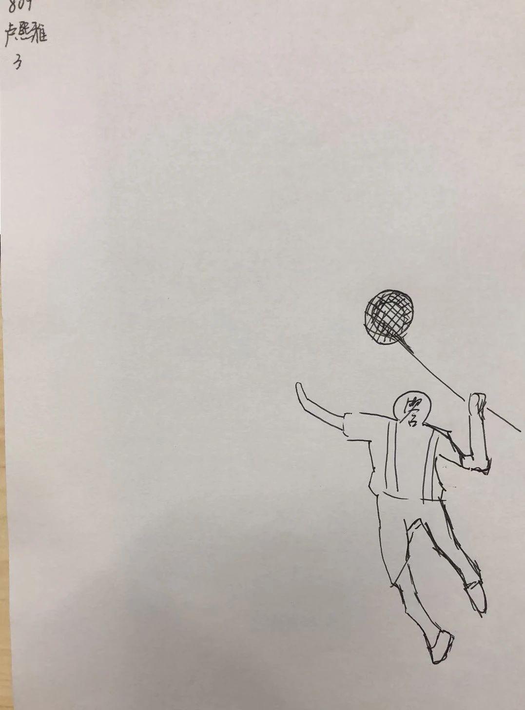 这幅画作充满了童趣和活泼的氛围,简单而生动的线条让人感受到运动的活力和乐趣。为了提升这幅作品,可以考虑在背景中加入一些色彩,模拟运动场地或观众的背景,以增强画面的层次感和故事性。此外,可以在运动员的动作中添加更多细节,比如汗水的飞溅或背景中羽毛球的轨迹,增强动感和真实感。这样的调整可以使作品在表现运动主题时更加完整和引人入胜。