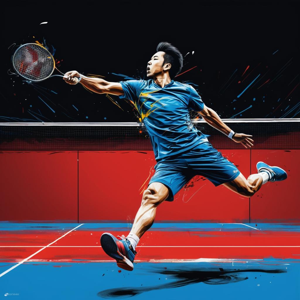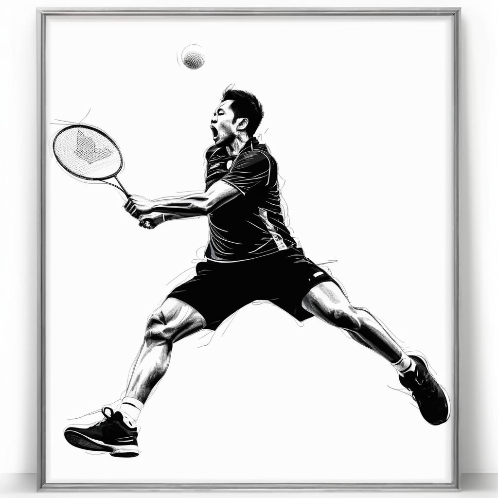 为了进一步提升这幅作品的艺术价值,可以考虑在背景中加入一些色彩,模拟运动场地或观众的背景,以增强画面的层次感和故事性。此外,可以在运动员的动作中添加更多细节,比如汗水的飞溅或背景中羽毛球的轨迹,增强动感和真实感。这样的调整可以使作品在表现运动主题时更加完整和引人入胜。这样的艺术手法不仅能吸引儿童的目光,也能唤起成年人对于运动和自由的向往与热情。