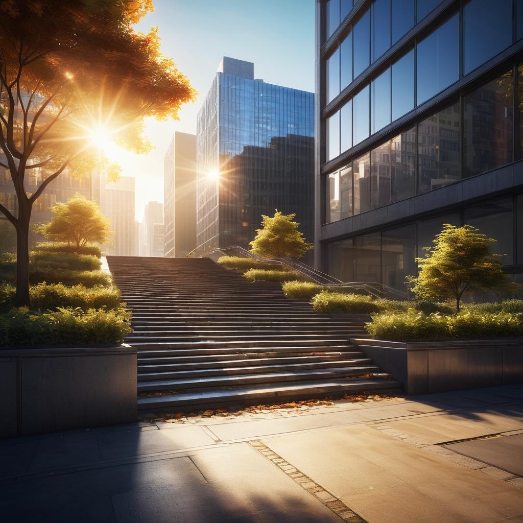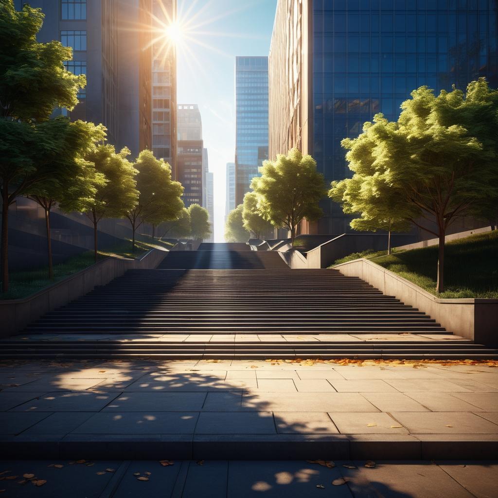 這幅攝影作品以獨特的構圖和光影效果,描繪了城市中一個普通卻富有詩意的瞬間。階梯的設計在畫面中成為一個強烈的視覺元素,吸引觀者的目光隨著階梯的延伸而移動。陽光從右側斜射而來,形成了強烈的明暗對比,使畫面充滿了動感與活力。這樣的光影安排,不僅僅是對時刻的捕捉,更是對城市生活中靜謐時光的讚美。在畫面左側,現代建築與自然景觀的結合,突顯了城市發展與自然和諧共存的主題。這幅作品通過光線的運用和構圖的選擇,成功地傳達了一種寧靜的美感,讓觀者不禁思考城市時間的流逝與生活的意義。這樣的藝術表達,不僅僅是對現實的描繪,更是對生活中瞬間之美的詮釋。通過引入更多的元素,如人物或動態物件,作品可以進一步講述一個更完整的故事,增強其藝術感染力。