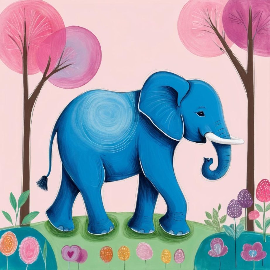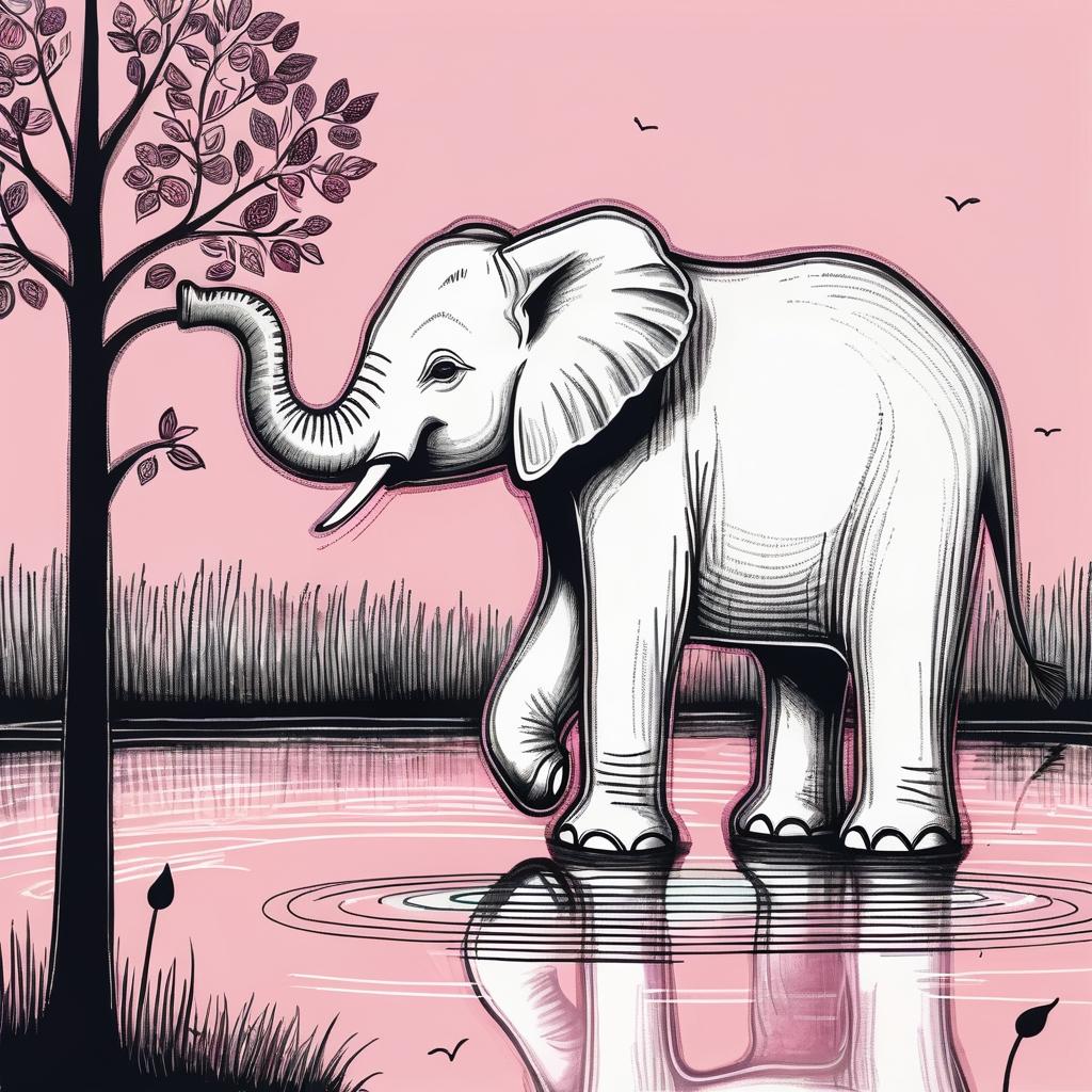 这幅画作以简单的线条描绘了一只大象,背景采用粉红色调,传递出一种纯真和稚拙的美感。线条的流畅与随意,仿佛回到了孩提时代无拘无束的创作方式。这种艺术表达不仅仅是一种视觉上的呈现,更是一种对儿童视角的深刻体悟。大象的长鼻子和耳朵被夸张地描绘出来,抓住了其最典型的特征,同时也激发了观者的想象。儿童艺术专家可能会建议在这幅画中加入更多的细节,如背景中的自然元素或是大象身上的纹理,这些元素能够增强画面的层次感和故事性。通过使用更加丰富的色彩和细腻的阴影处理,这幅作品可以在儿童插画领域中更具吸引力和教育意义,让孩子们在欣赏的同时,也能感受到色彩和形状的多样性和乐趣。
